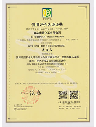 大慶華營化工有限公司成立于2006年7月10日,注冊資金3300萬元,公司類型為有限責(zé)任公司。位于大慶高新技術(shù)產(chǎn)業(yè)開發(fā)區(qū)宏偉園區(qū),是一家集油田助劑產(chǎn)品的研發(fā)、生產(chǎn)、銷售和技術(shù)服務(wù)為一體的現(xiàn)代化高新技術(shù)企業(yè)。公司注重科技創(chuàng)新,公司擁有18項自主知識產(chǎn)權(quán)。企業(yè)承擔(dān)過國家火炬計劃重點項目、國家科技型中小企業(yè)創(chuàng)新項目等,2011年被科技部火炬高新技術(shù)產(chǎn)業(yè)開發(fā)中心評為國家火炬計劃重點高新技術(shù)企業(yè)。公司十余種產(chǎn)品獲得中國石油天然氣集團(tuán)公司產(chǎn)品質(zhì)量認(rèn)可證書,其中粘穩(wěn)型驅(qū)油劑獲國家火炬計劃重點項目證書。公司憑借多年對大慶油田及周邊油田地質(zhì)情況的研究,可針對各油田地層特點調(diào)整產(chǎn)品的配方,更好地發(fā)揮各類油田助劑的性能。